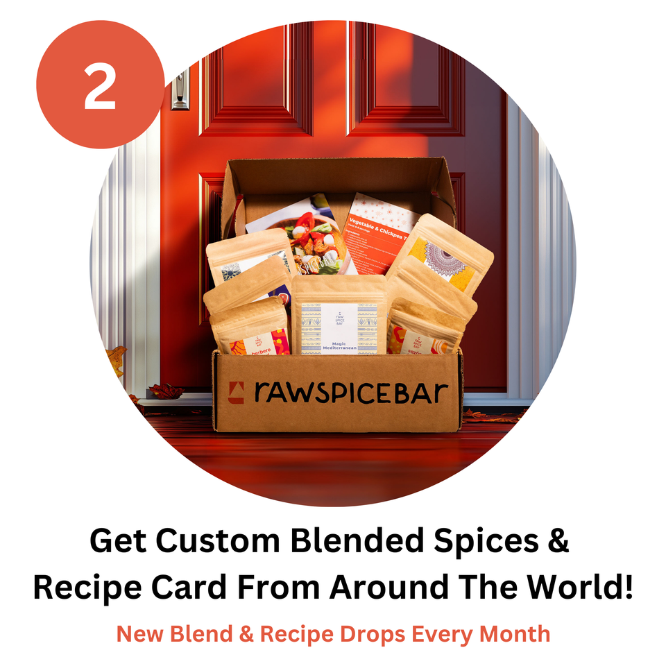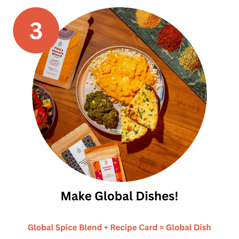 Our spice blend subscription is a monthly delivery of a freshly packed two-ounce spice blends paired with a seasonally appropriate recipe to make a global inspired dish. Subscription customers receive a monthly email newsletter highlighting the origin, history, and cuisine of the blend. We also include a printed seasonal recipe that highlights the flavors of the spice blend.